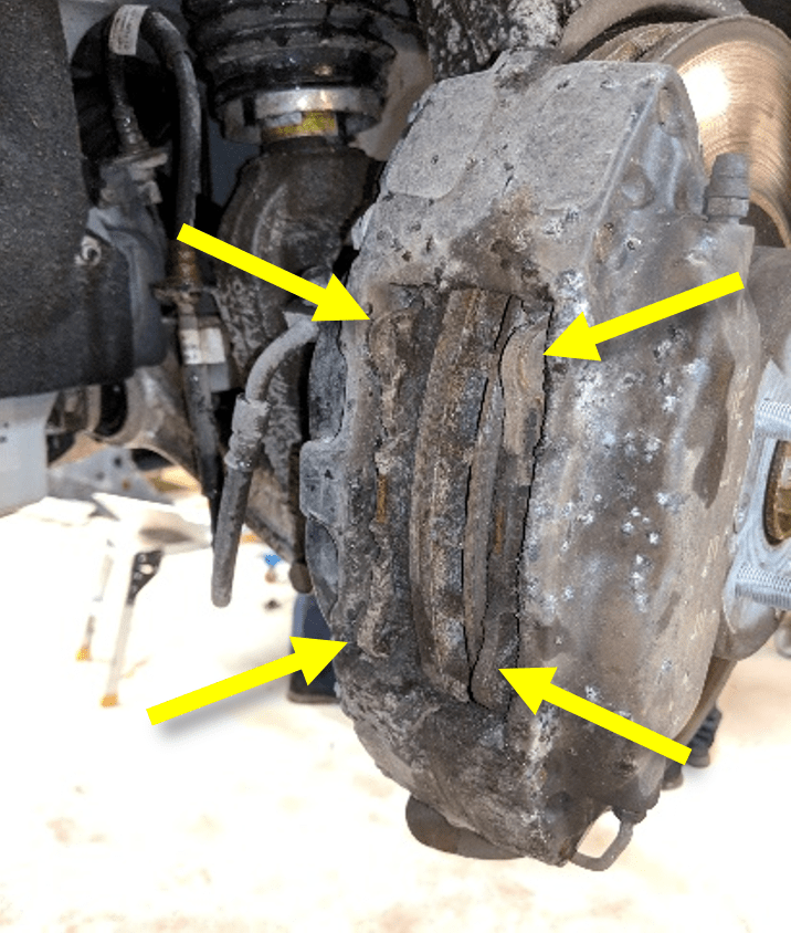 警告请勿混用制动片,因为它们在制动钳和支架中的磨损程度各不相同。