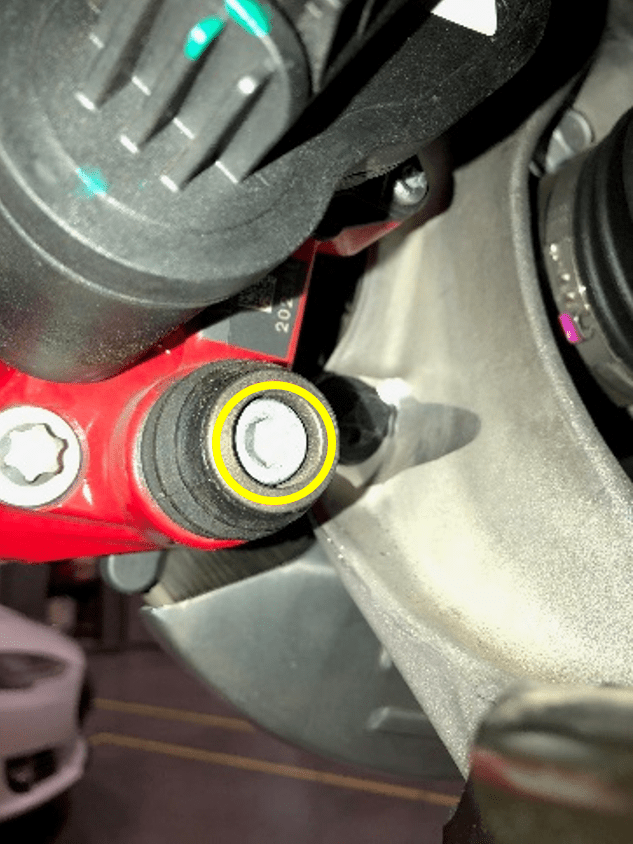 - 转动前轮轮毂轴承,使其完全朝向左侧,然后对右前制动钳重复第 7 至第 17 步。
