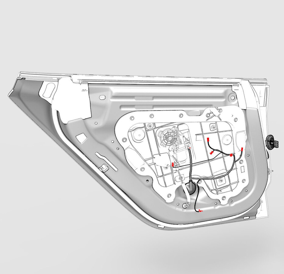- 将电气线束连接到 LH 后车门饰板连接器。