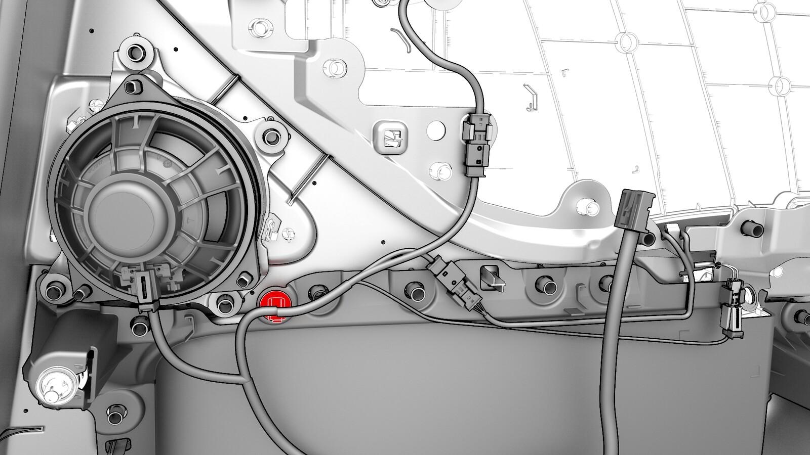 将电气线束的短脱线连接到扬声器。