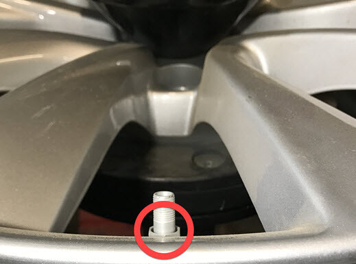 - 拆下将胎压监测系统传感器固定到轮毂的螺母,然后将传感器从轮毂上拆下。