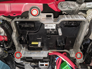 - Remove the bolts that attach the front body controller module cover to the front body controller module, and then remove the cover.