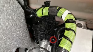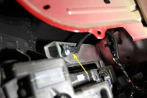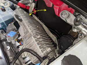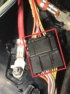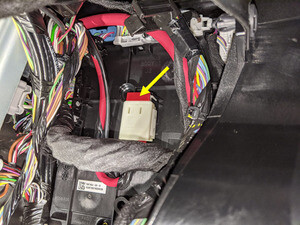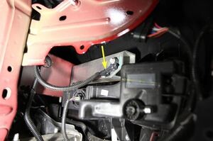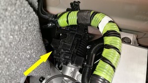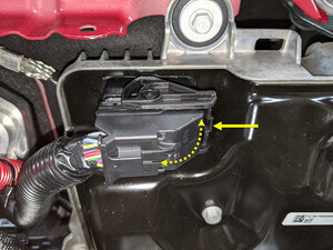 - Remove the bolt that attaches the thermal harness cover to the front body controller module, and then remove the cover from the module.