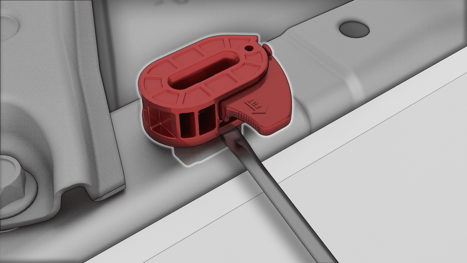 - Press the upper locking tabs to removal LH seat cushion clip.