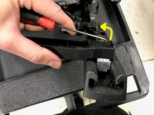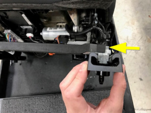 - 使用卡子撬具将线束夹从座椅滑轨电机上拆下。