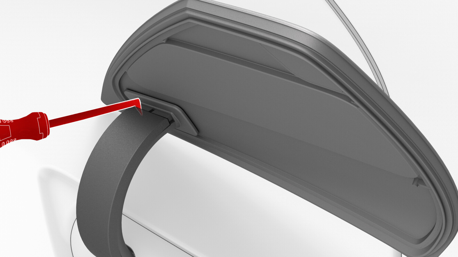 注铰链盖在拆卸充电接口盖板的过程中会被破坏。新的铰链盖将随新的充电接口盖板一起提供。