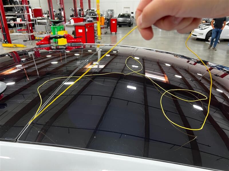 - 将锚固点固定到车顶固定玻璃总成内部,然后将线固定到锚固件上。