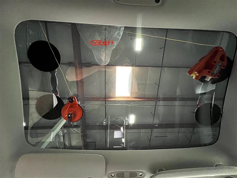 - 将吸盘从新固定车顶玻璃上拆下。