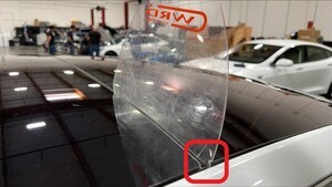 - 使用胶带暂时固定车顶玻璃。