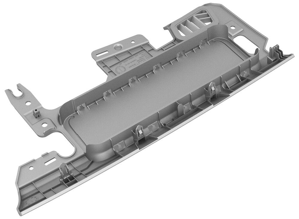 将驾驶位膝部气囊安装到盖罩中。