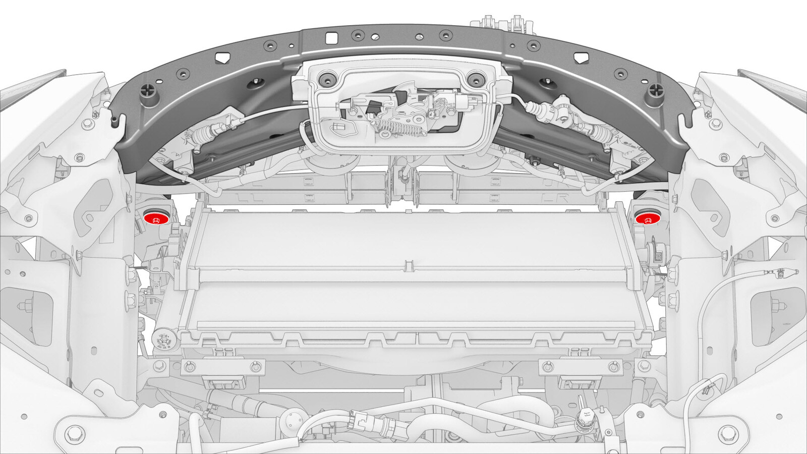 - 拧松但切勿拆下将前端支架的顶部固定到车身的螺栓。