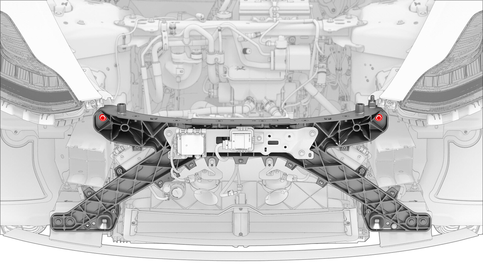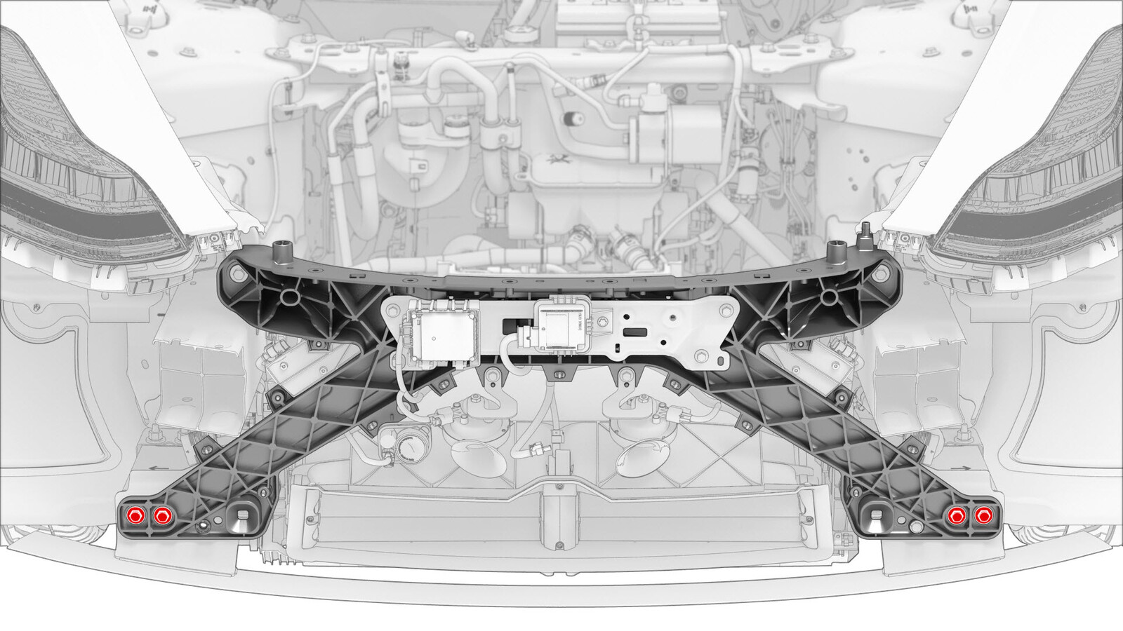 - 拆下将前端支架固定到防撞罐的螺栓。