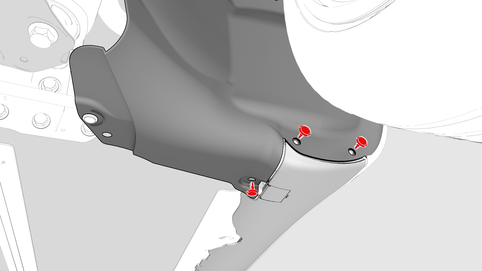 - 安装将右侧轮拱内衬底部后边缘固定到车身的下部卡子(3 个)。