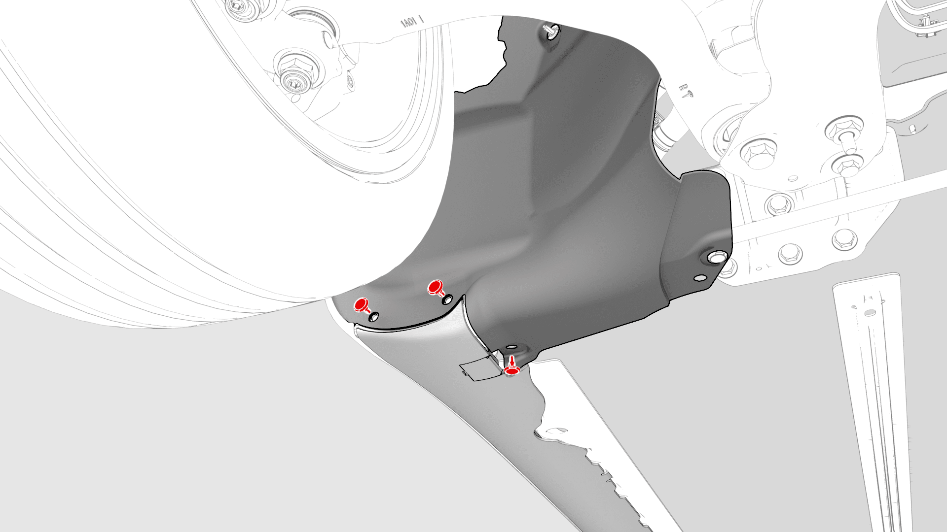 - 拆卸将右侧轮拱内衬底部后边缘固定到车身的下部卡子(3 个),以便接触冷却液软管。