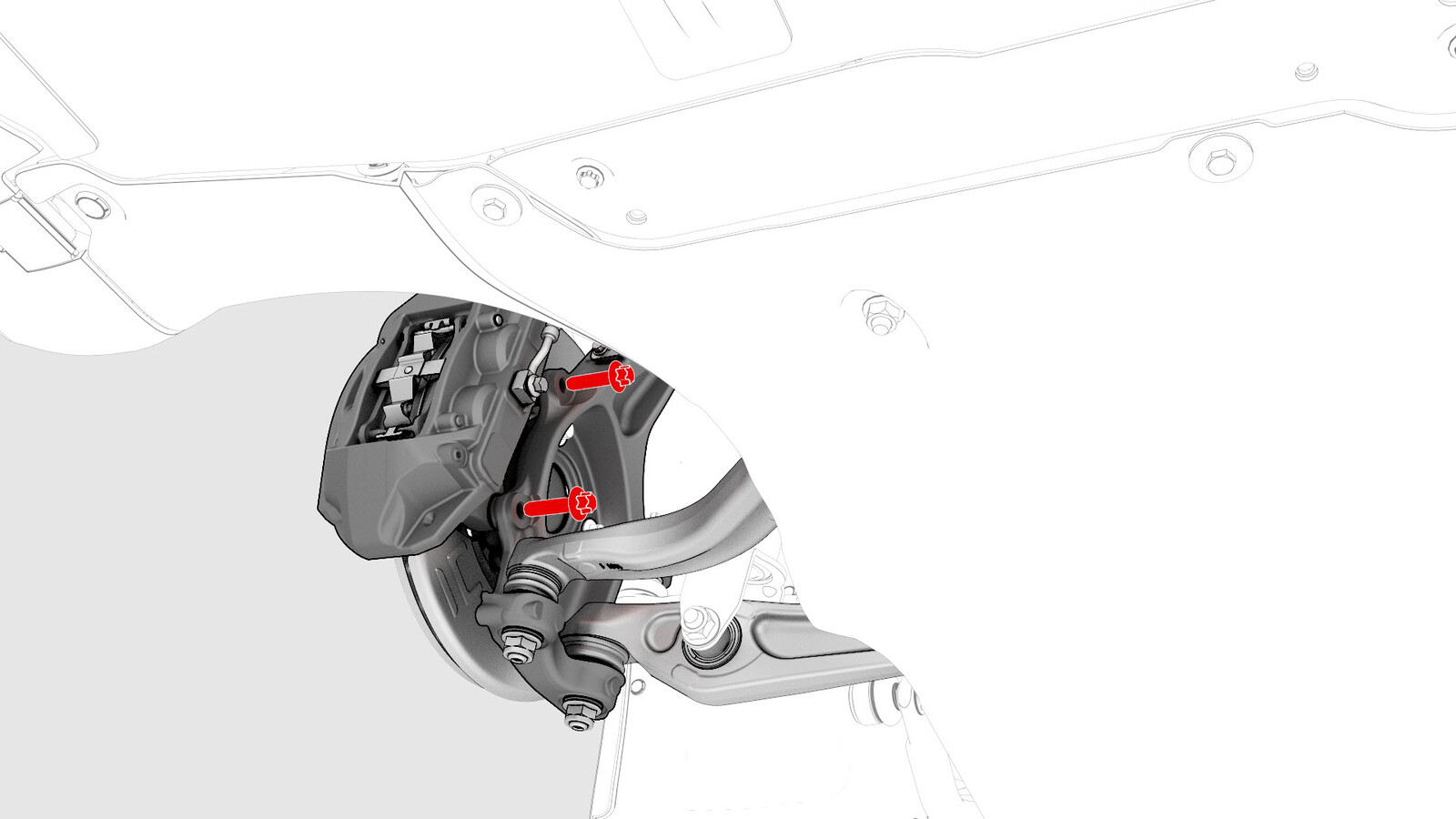 | Bolts that attach the LH front brake caliper to the LH front knuckle |