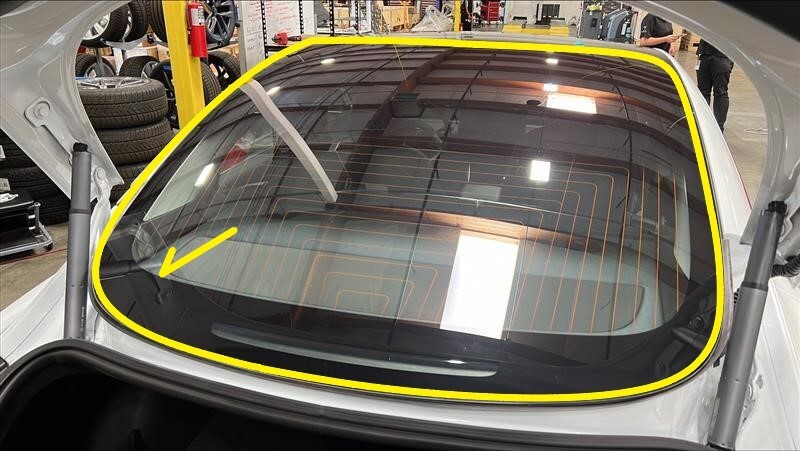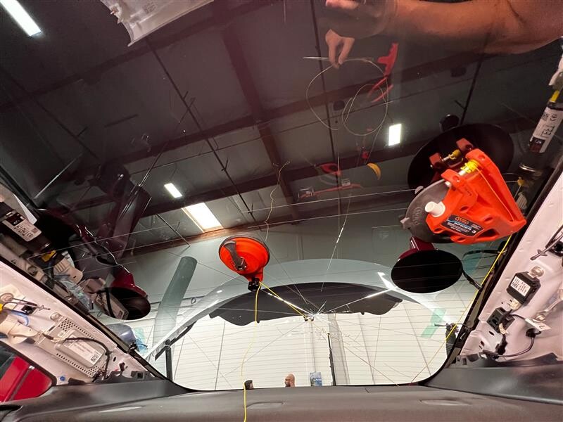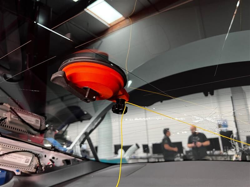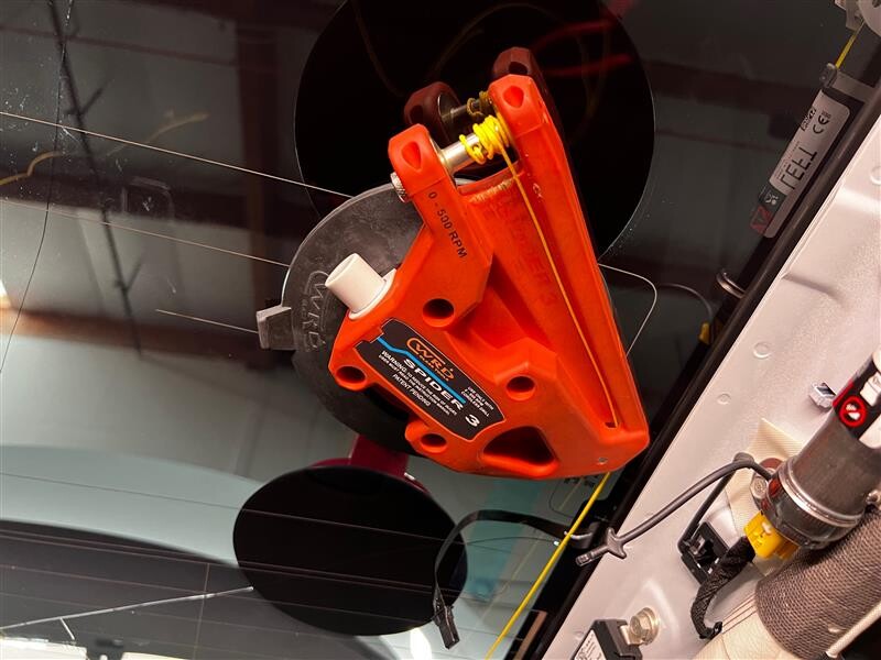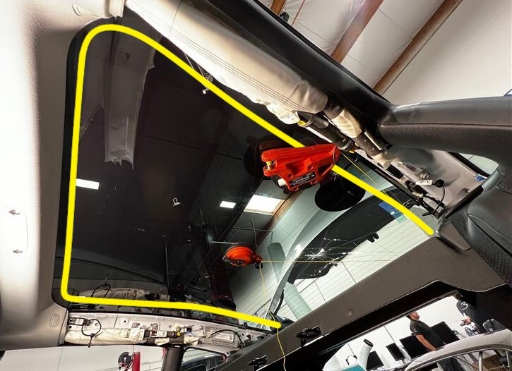 - 在助手的帮助下,将背光灯玻璃放置在车辆上进行快速适配,标记网片需要调整的位置。