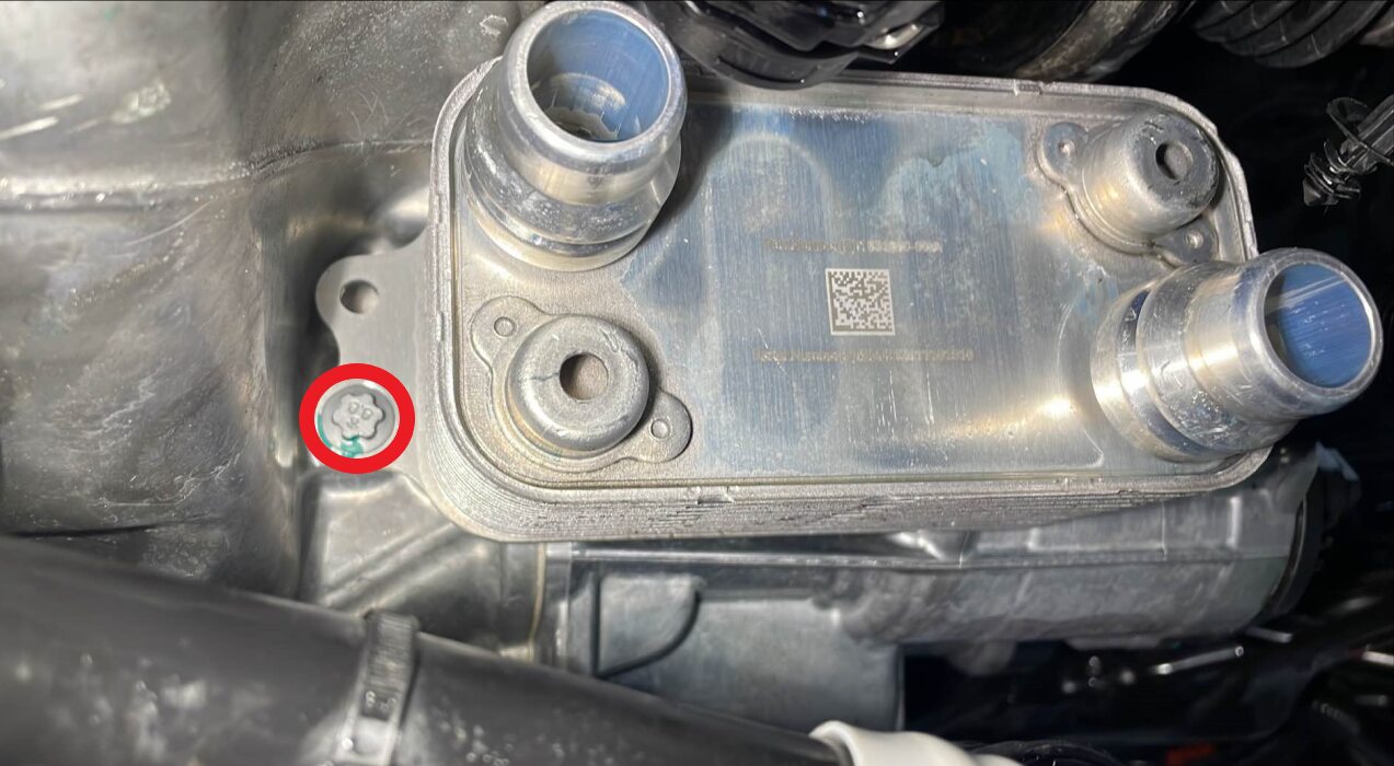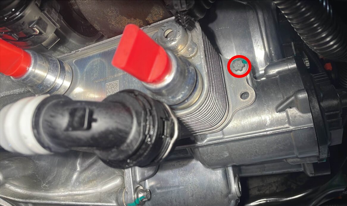 the bolts (x2) that attach the heat exchanger to the drive unit.