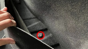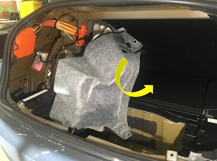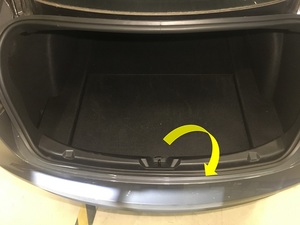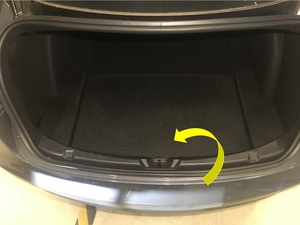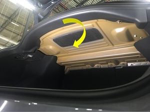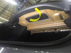 注2x clips, Partially release rear trunk carpet, Move LH trunk side trimaside and tuckcarpet under trim, Take care not to cause excessive creasing.