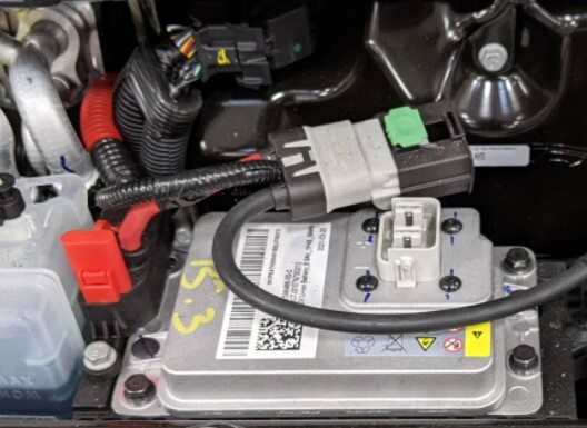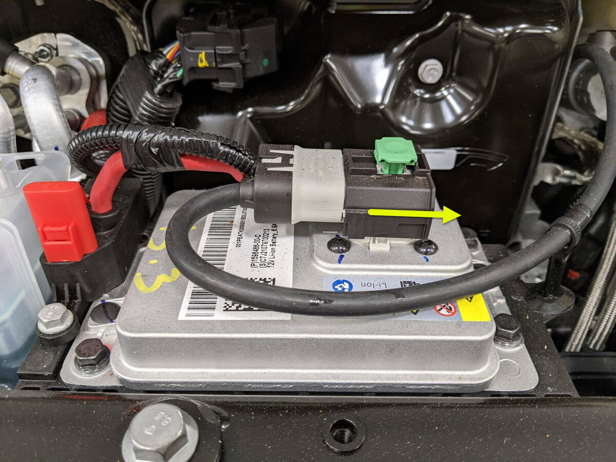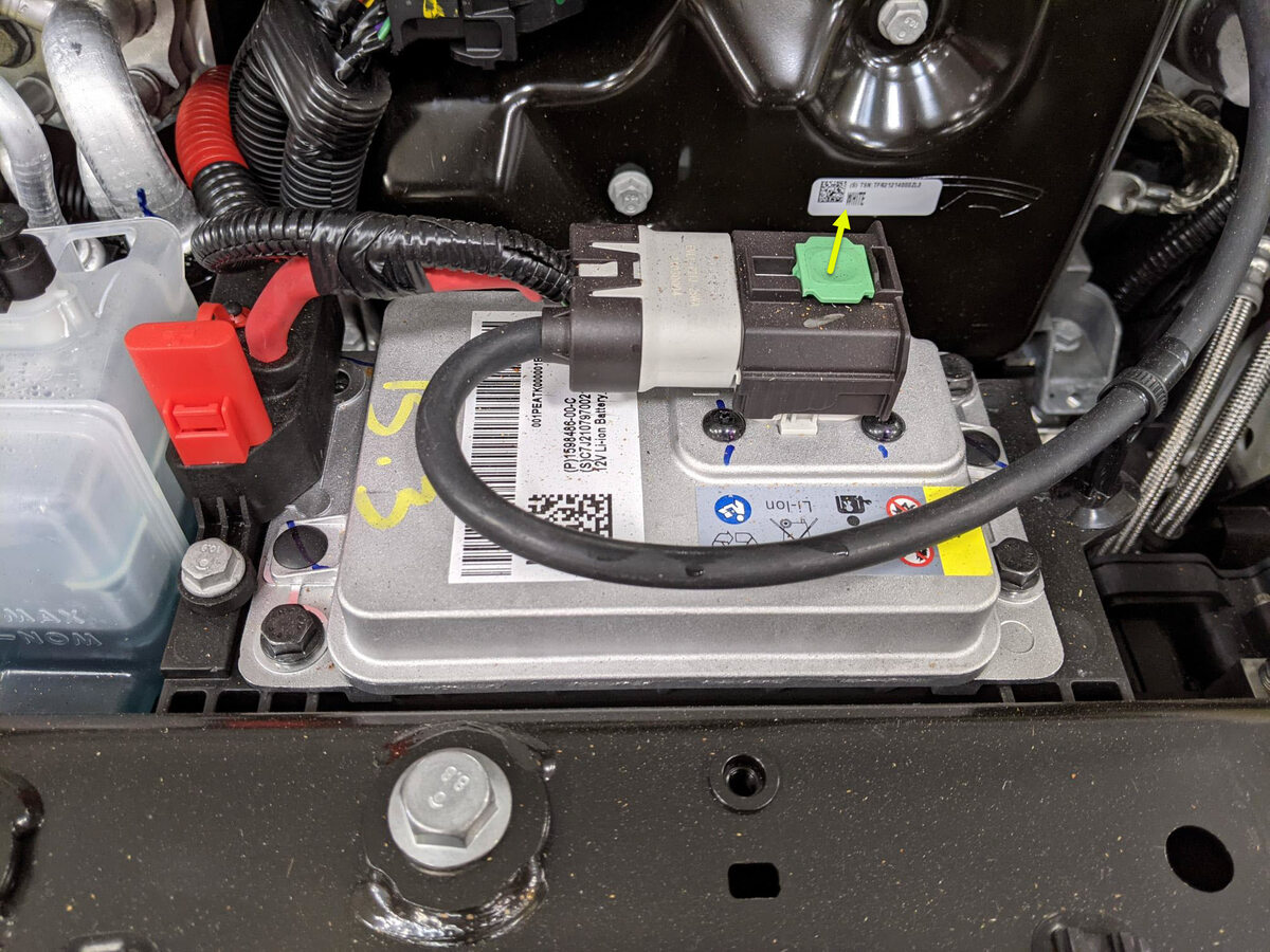 注2x connectors, Secure FRL first, Seat LV battery connection and push black connector lock inwards to secure, Engage green locking tab when fully seated