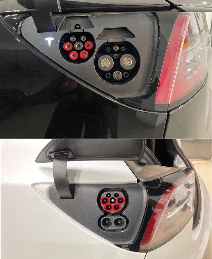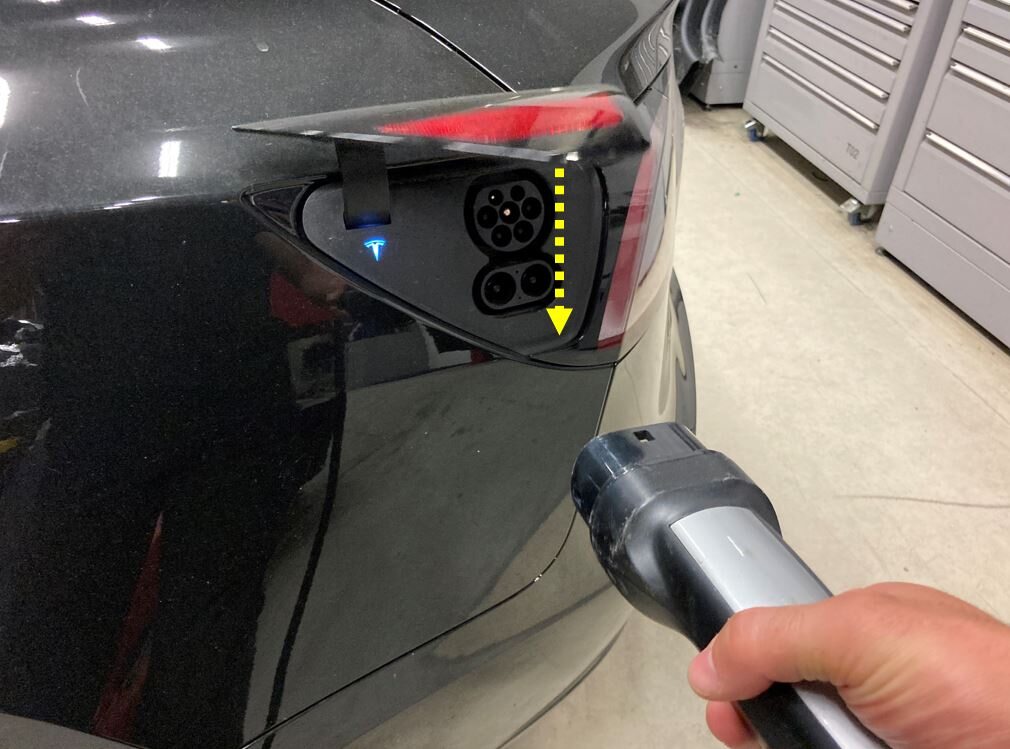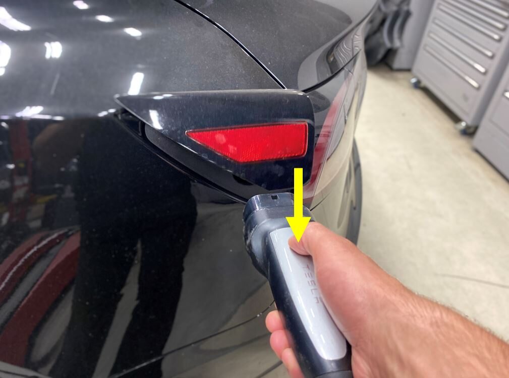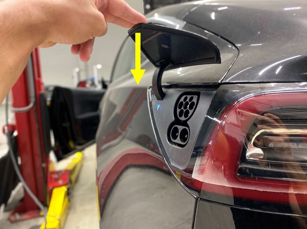 注Use customer's charging equipment if available, lightly push on the lower corner of CP door, once opening is confirmed then close the door, press the button on the charge handle, there can be brief time out once CP door is open confirm vehicle is charging by connecting charge handle to the vehicle, disconnect charge handle and confirm CP door closes, ensure all charging adapters are present
