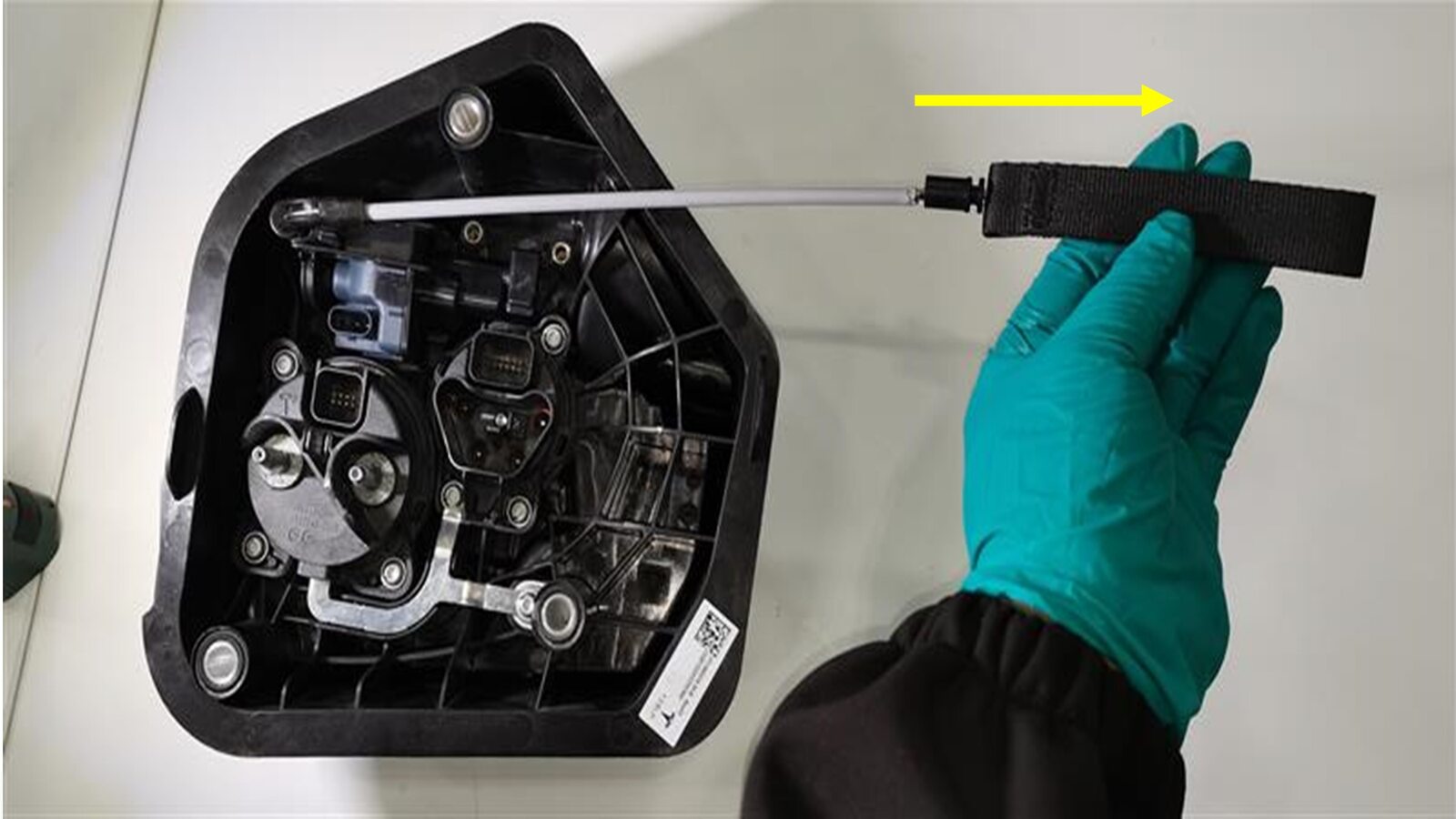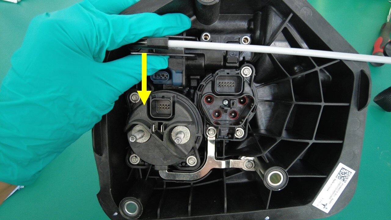 注2x connectors, Lift up and release green locking tab, Pull black connector lock outwards to release connection, Release red lock tab on FRL, Allow 2 minutes for all electrical circuits to fully discharge.