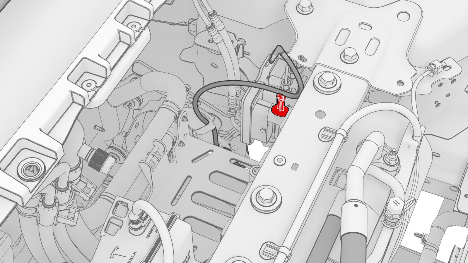 - 松开将冷却液软管固定到 12V 电池支架的夹子 (x2)。