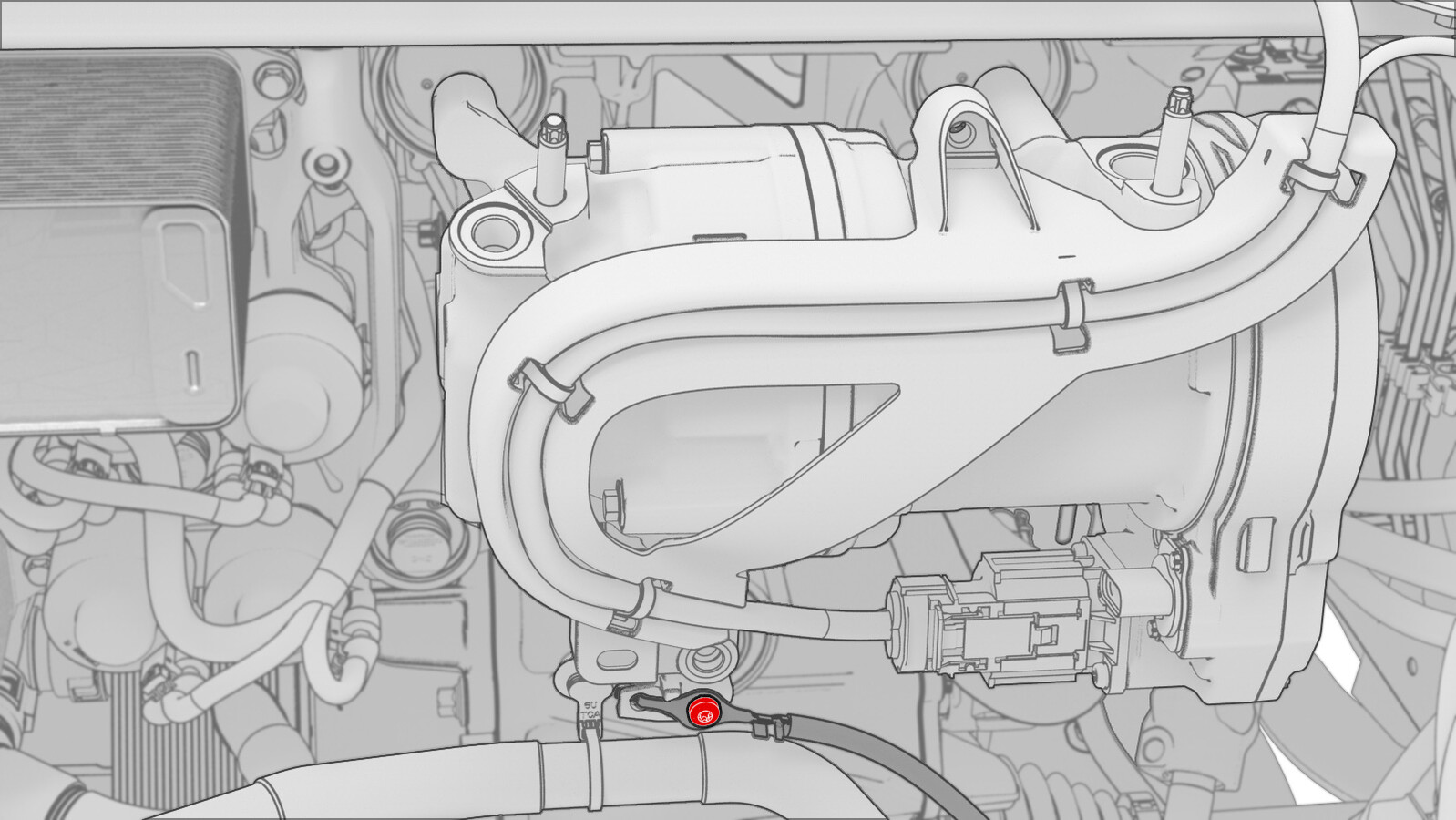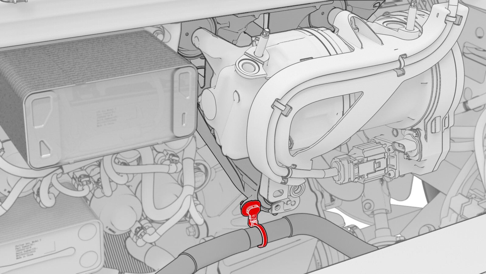 - 在接地带连接点附近,松开将冷却液软管固定到空调压缩机支架的夹子。