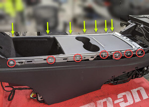 拆下将发亮部件固定到中控台的螺栓 (x14)。