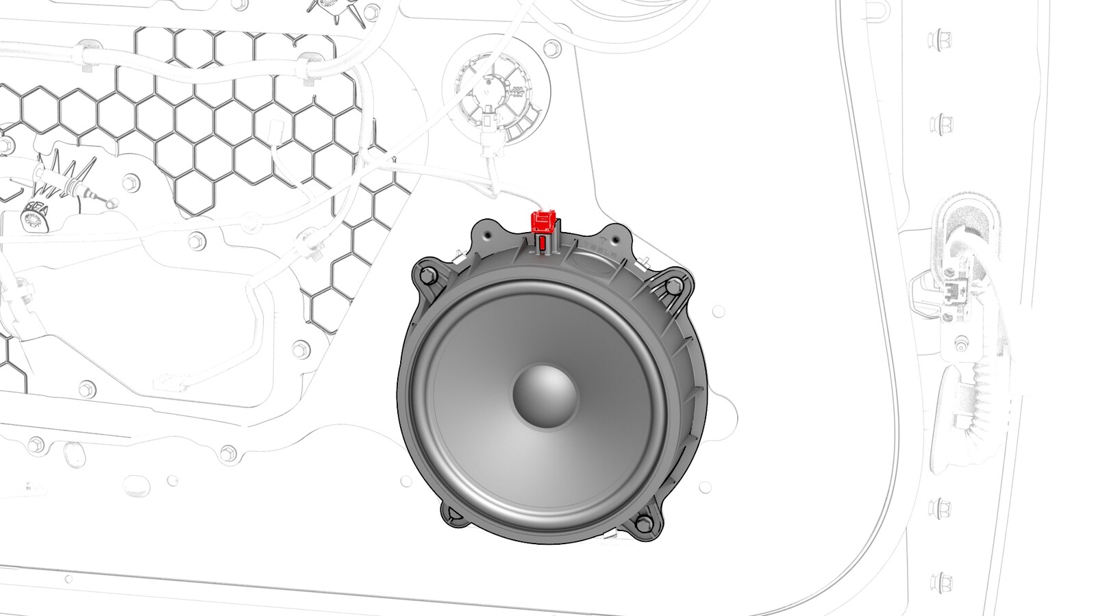 2. 断开电气连接器与前车门扬声器的连接。