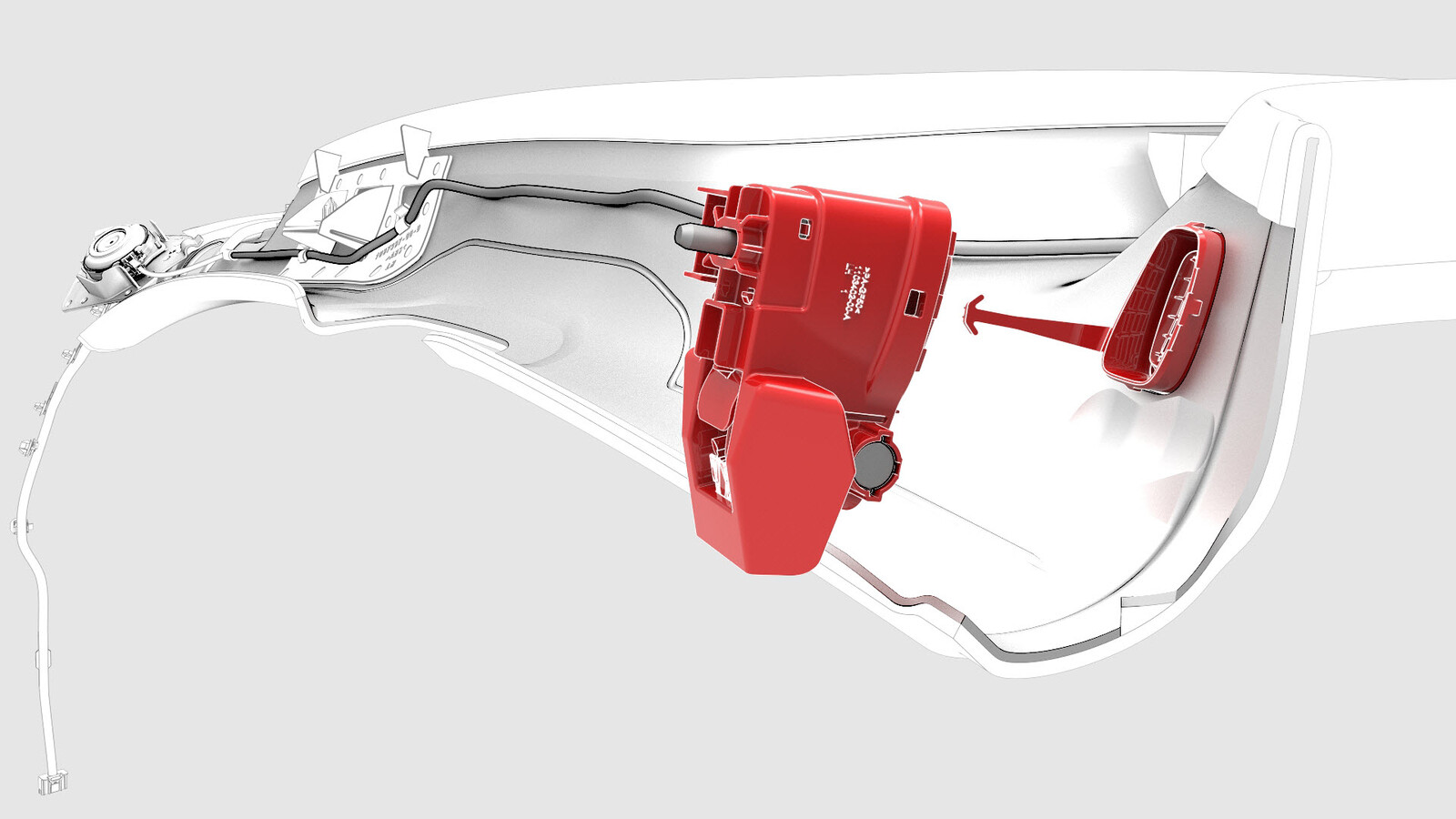 - 将 RH 衣挂安装到 RH 衣挂总成上,然后紧固将衣挂固定到衣挂总成的夹子。