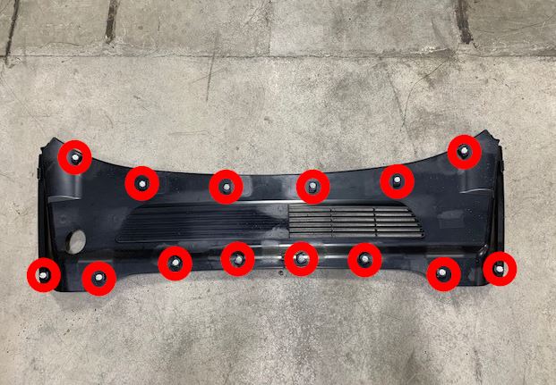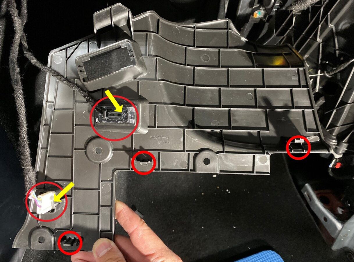 注12x clips, 2x locating pins, Use trim tool starting at top edge to release upper clips, Pull bottom to release remaining clips, Use caution and pull panel straight away from console, if panel is peeled off it could be damaged