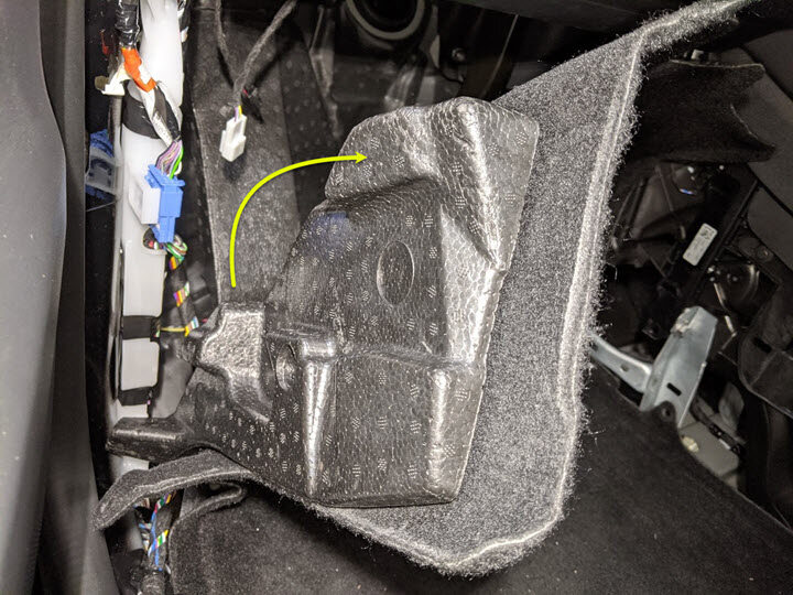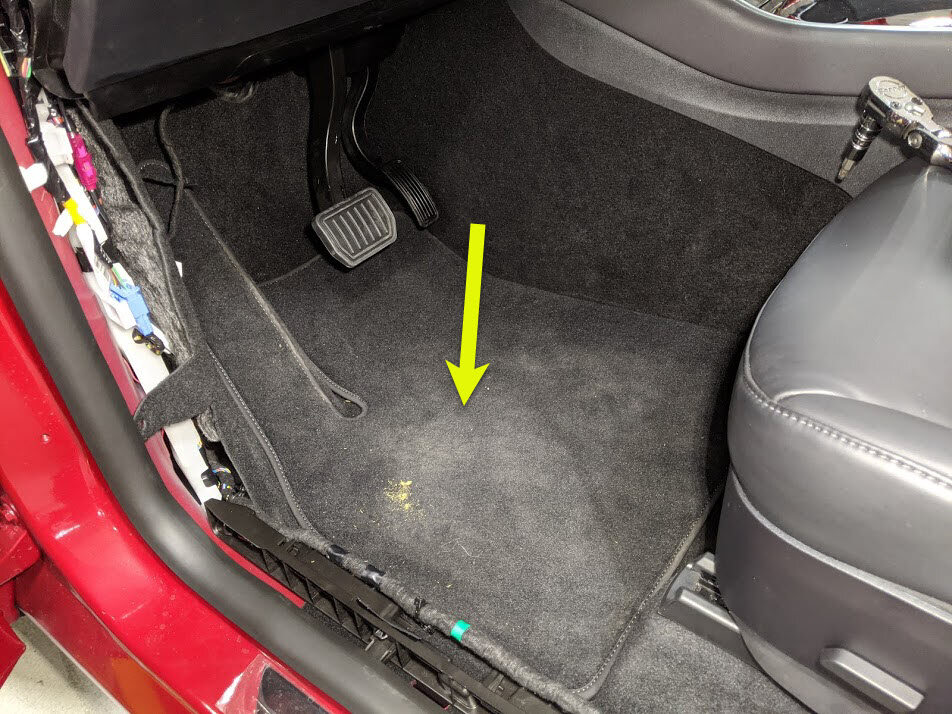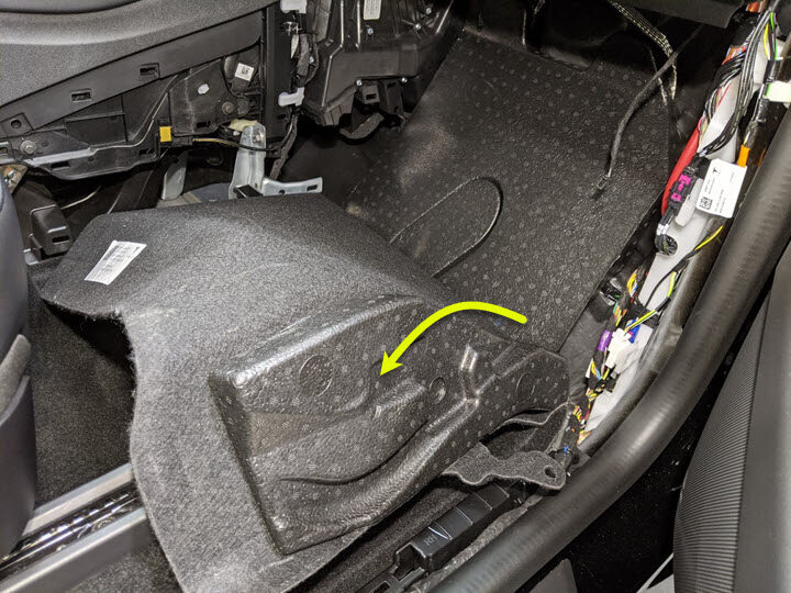注Maneuver carpet below brake pedal and accelerator pedal, Newer Vins may be equipped with additional foam installed below carpet