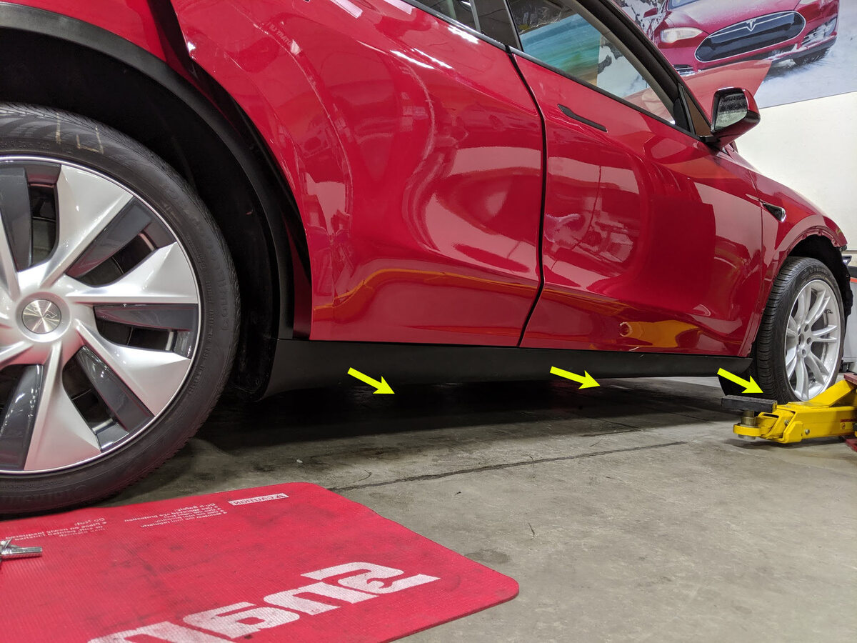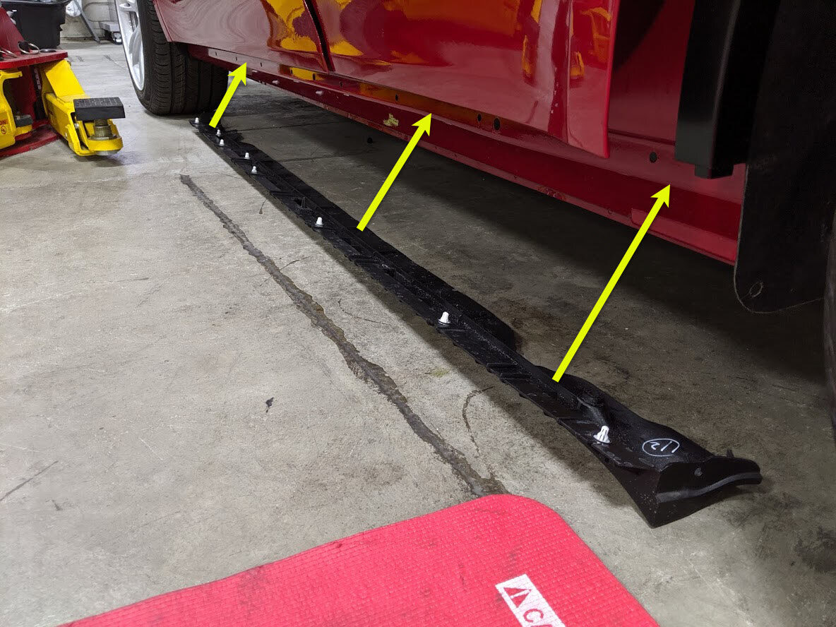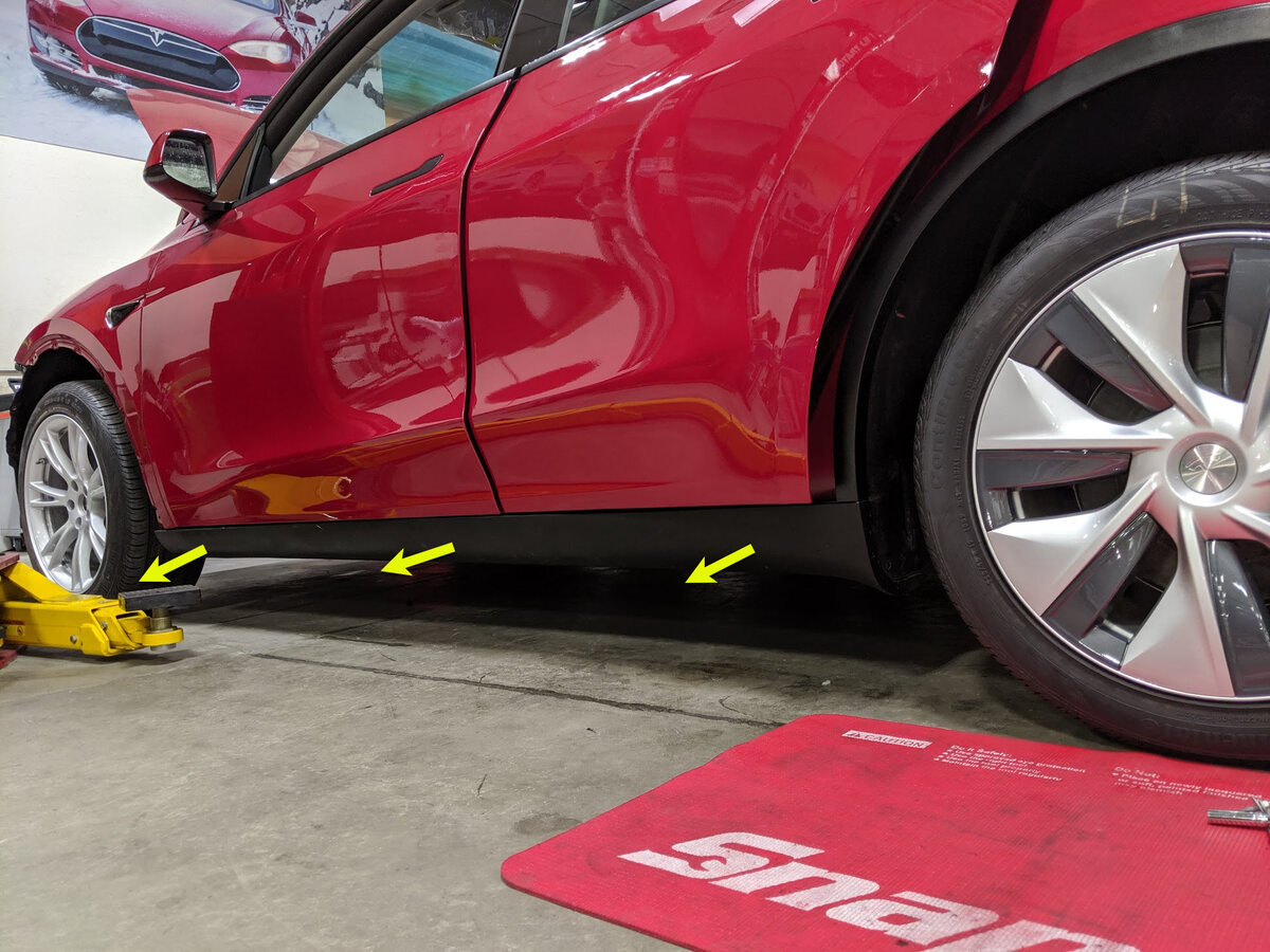 注11x clips, 11x tabs, Work a plastic trim tool between door panel and rocker cover to release tabs