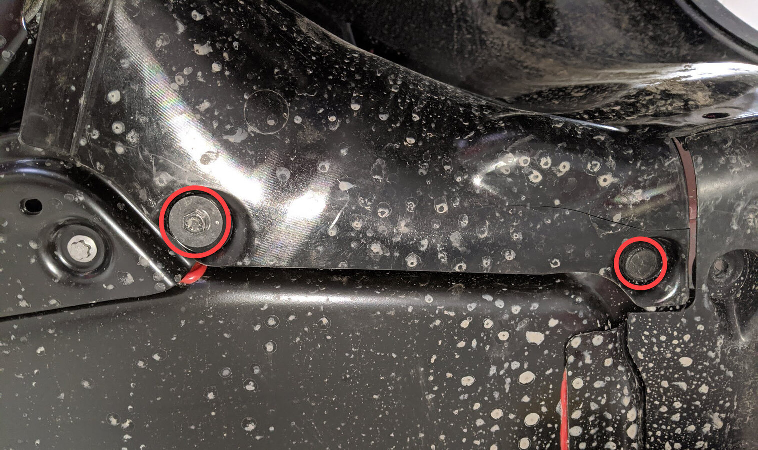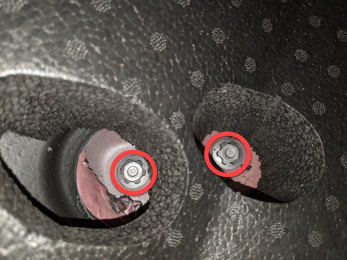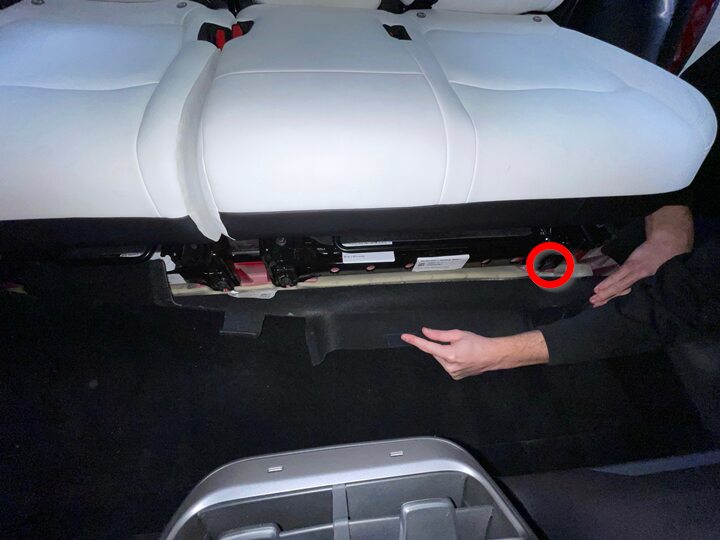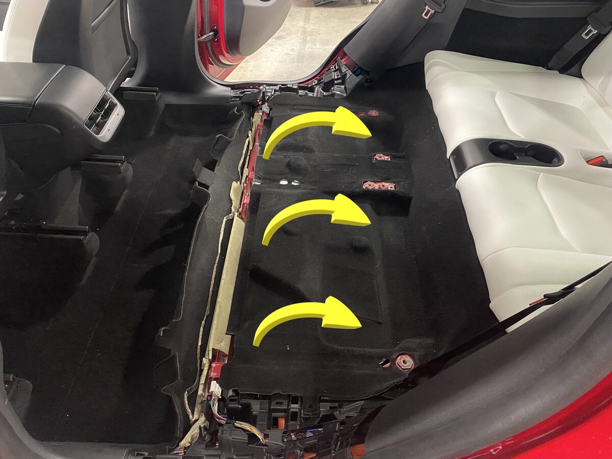 Separate carpet perforation below RH front seat to access RH middle inner HV battery bolt