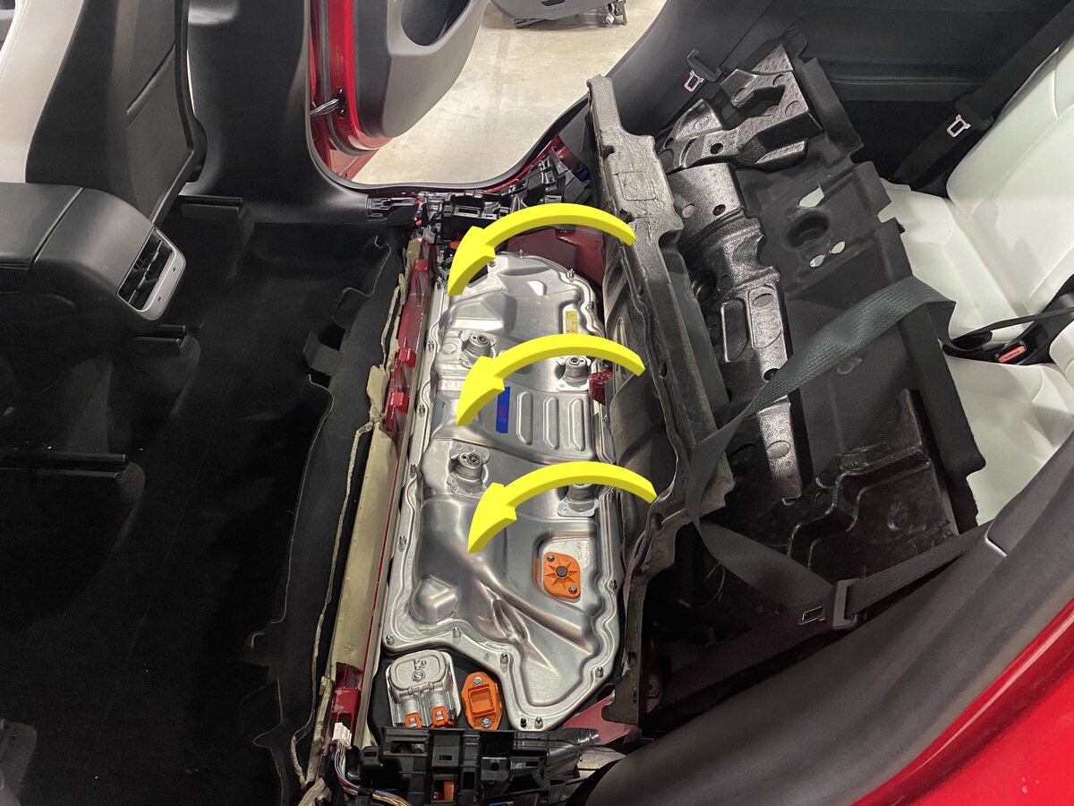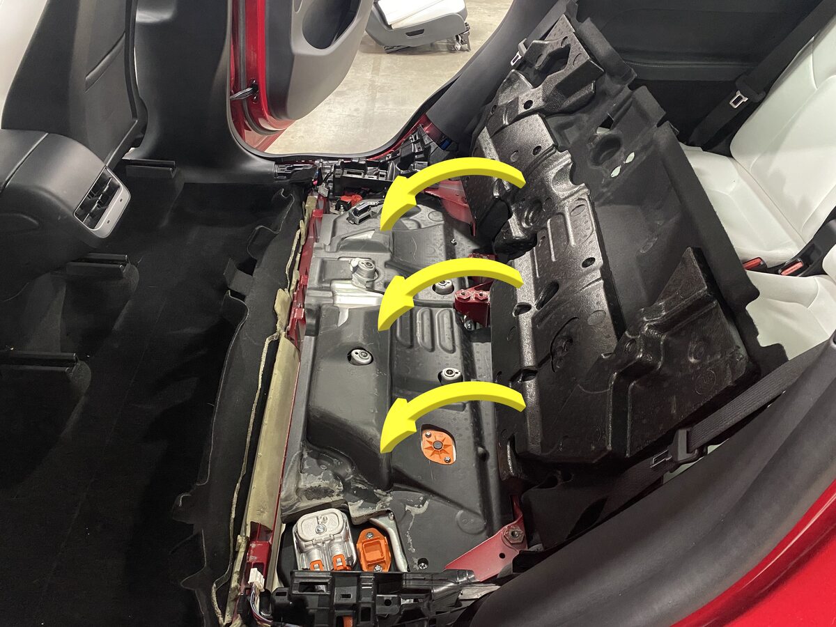 注This will allow access to HV battery bolts at RH front foot well and below RH front seat