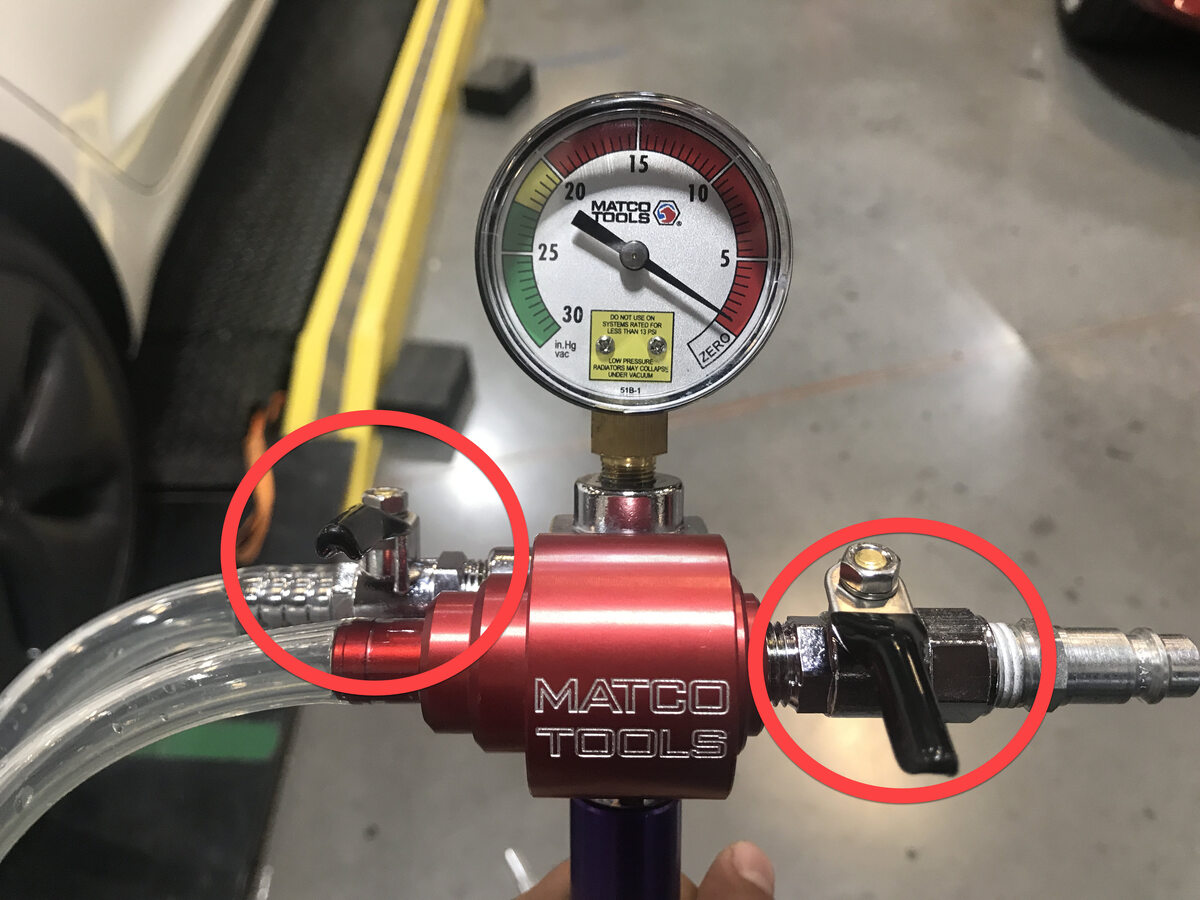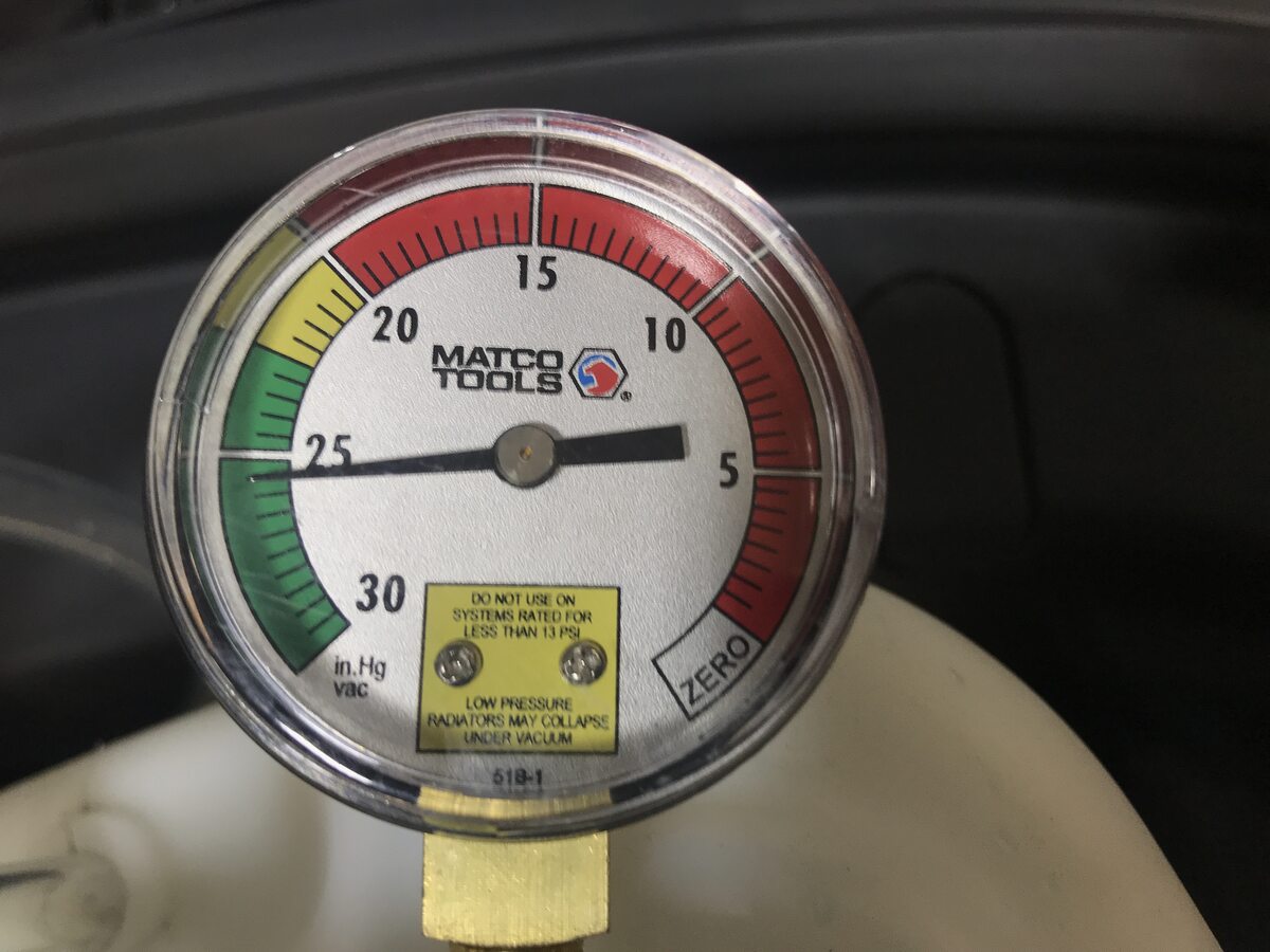 - Monitor gauge for 30 seconds to verify a vacuum is maintained in the cooling system