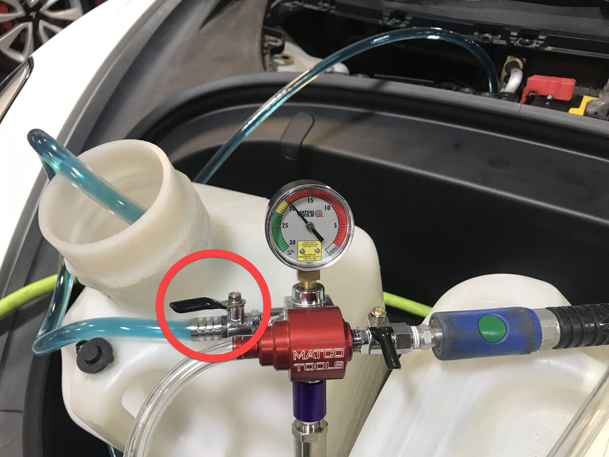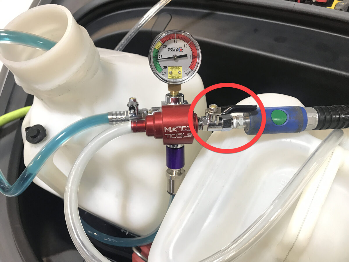 - Reopen the air inlet valve for 3 minutes to continue evacuating cooling system, then close valve