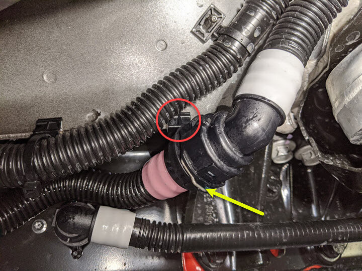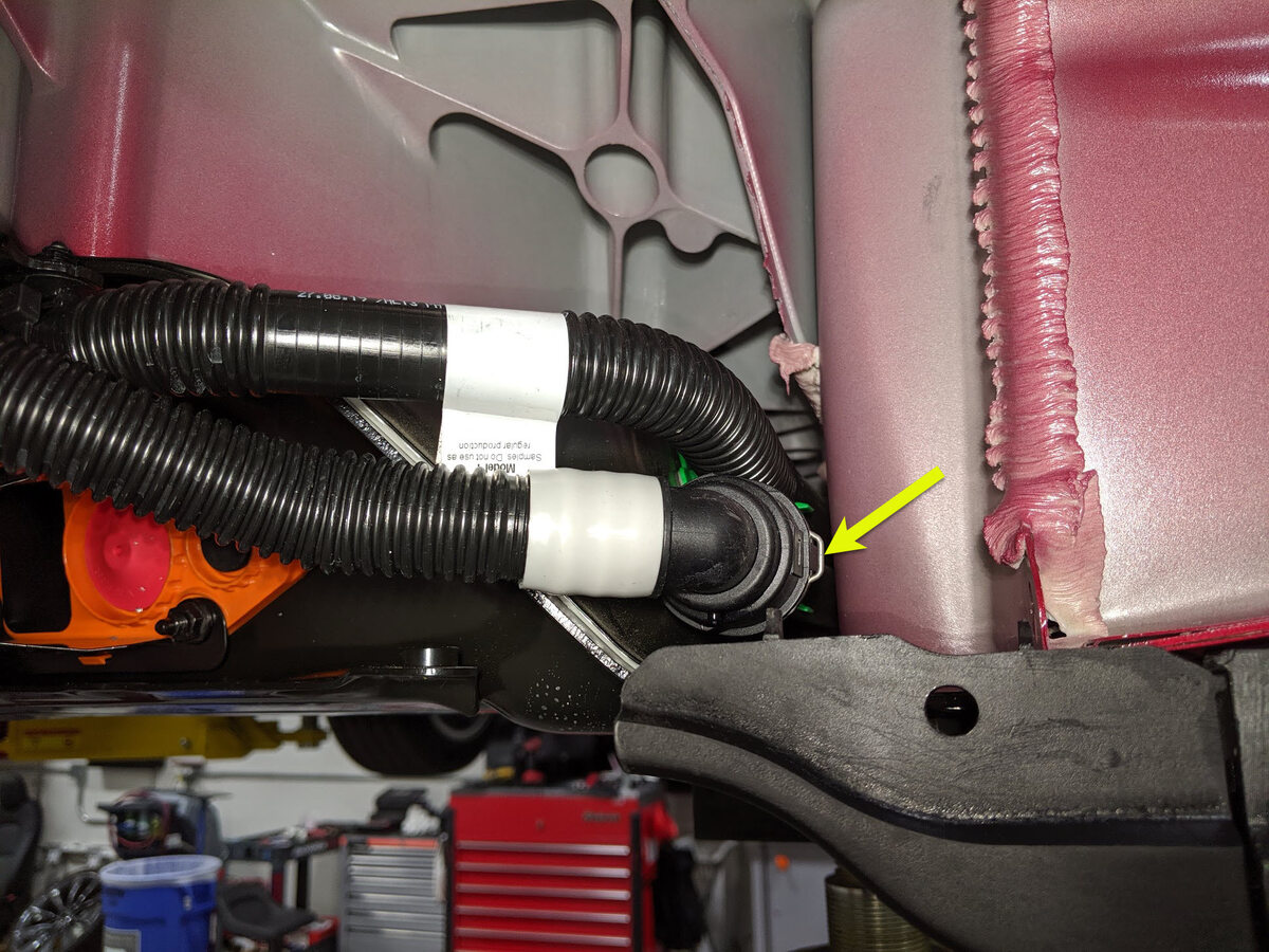 - Remove vacuum refill hose from refill cap on coolant bottle