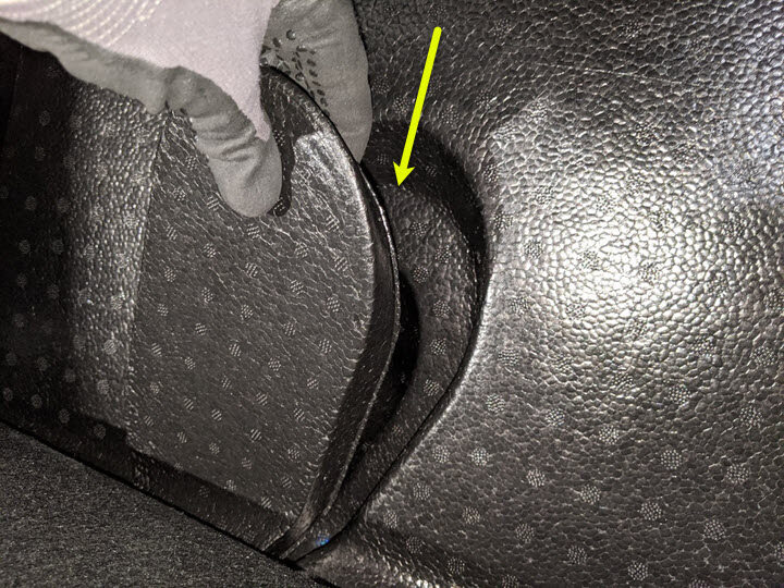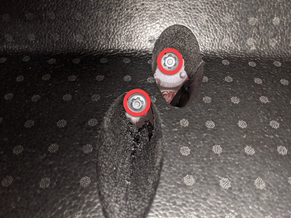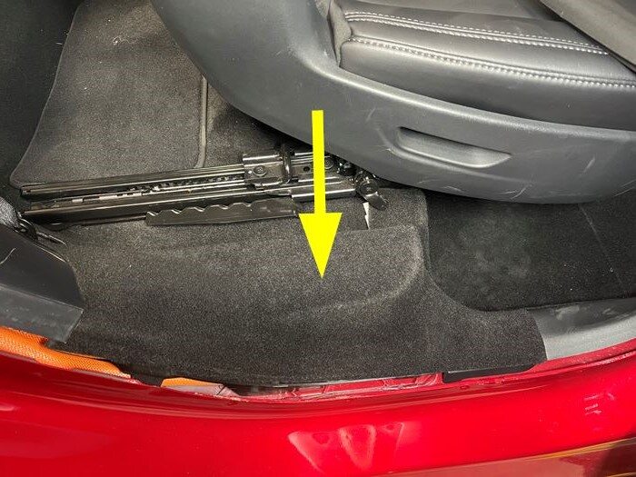 Separate carpet perforation below LH front seat to access LH middle inner HV battery bolt