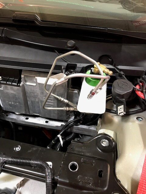 注Connect power supply to bleeder and turn on the power to set pressure to 30 psi, Attach the brake reservoir hose to the brake adapter at this time