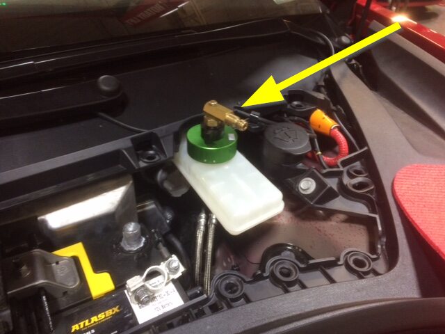 - Clean area around brake fluid reservoir and remove brake reservoir cap