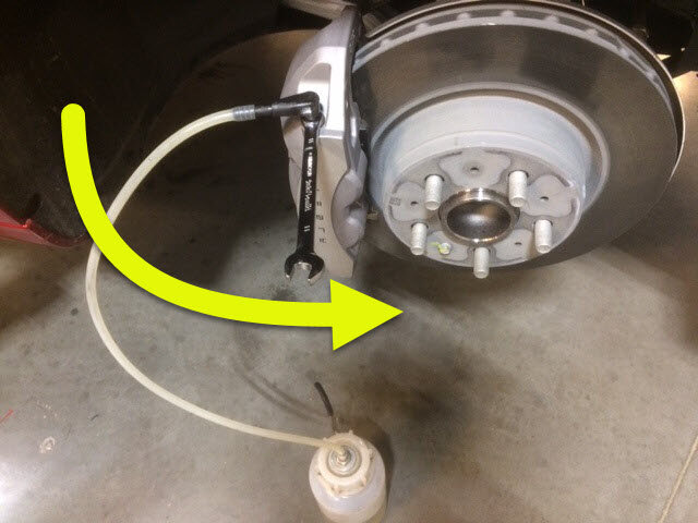 install the fluid catching bottle to LH rear brake caliper bleeding valve before