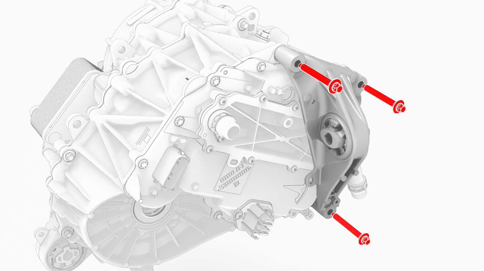 拆下将左前驱动单元支座固定到前驱动单元的螺栓,然后将支座从前驱动单元上拆下。