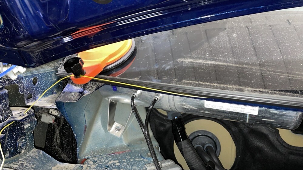 - 聚氨酯凝固期间,使用遮蔽胶带将挡风玻璃总成固定到车身。