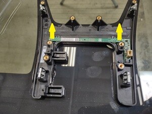 拆下将温度和湿度传感器固定到挡风玻璃支架的螺钉 (x2),然后从支架上松开传感器。
