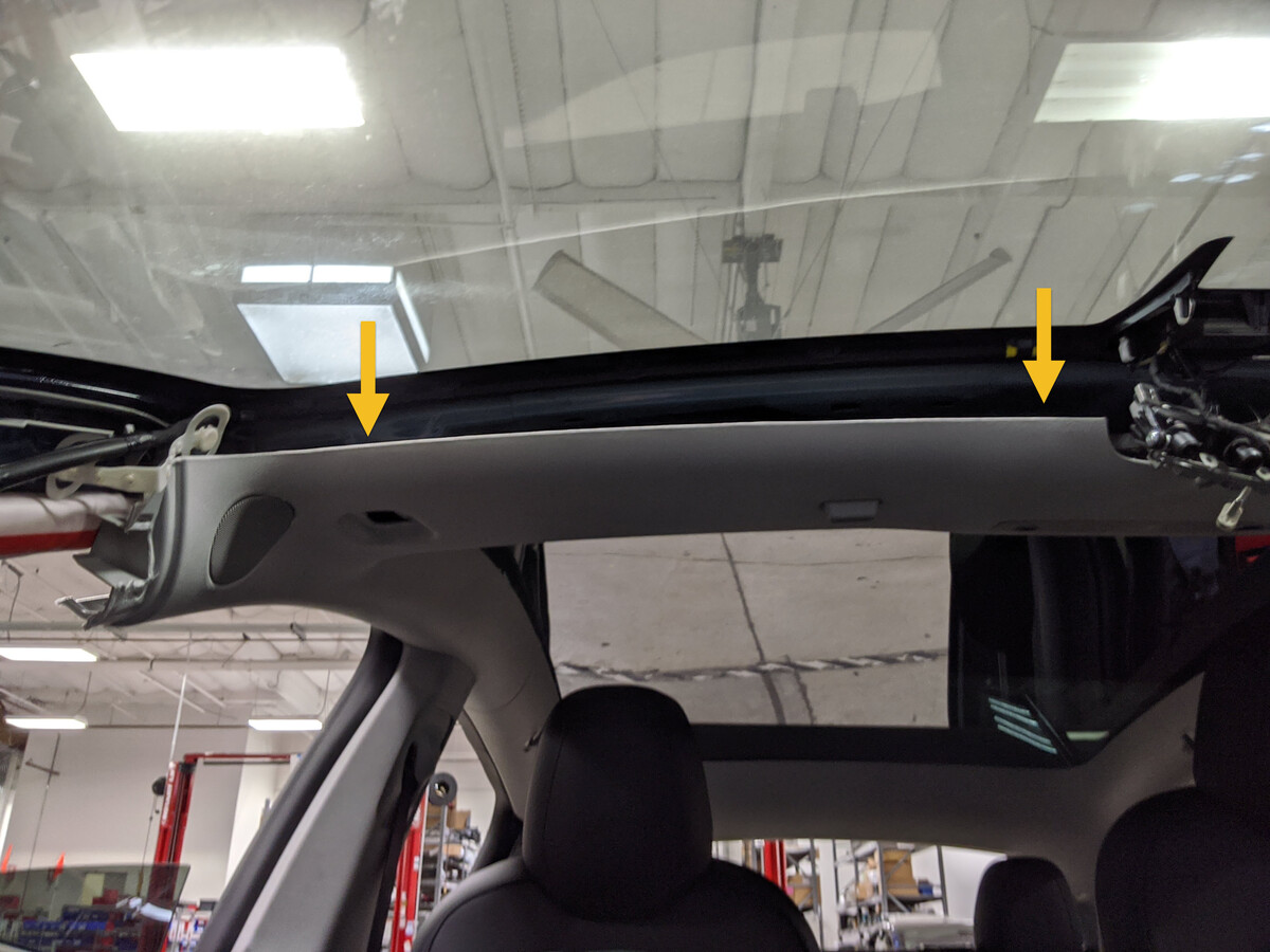 注将 A 柱和 B 柱附近的主密封条重新放置到顶蓬。