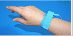 - 将鳄鱼夹适配器从腕带末端拆下,露出香蕉插头。