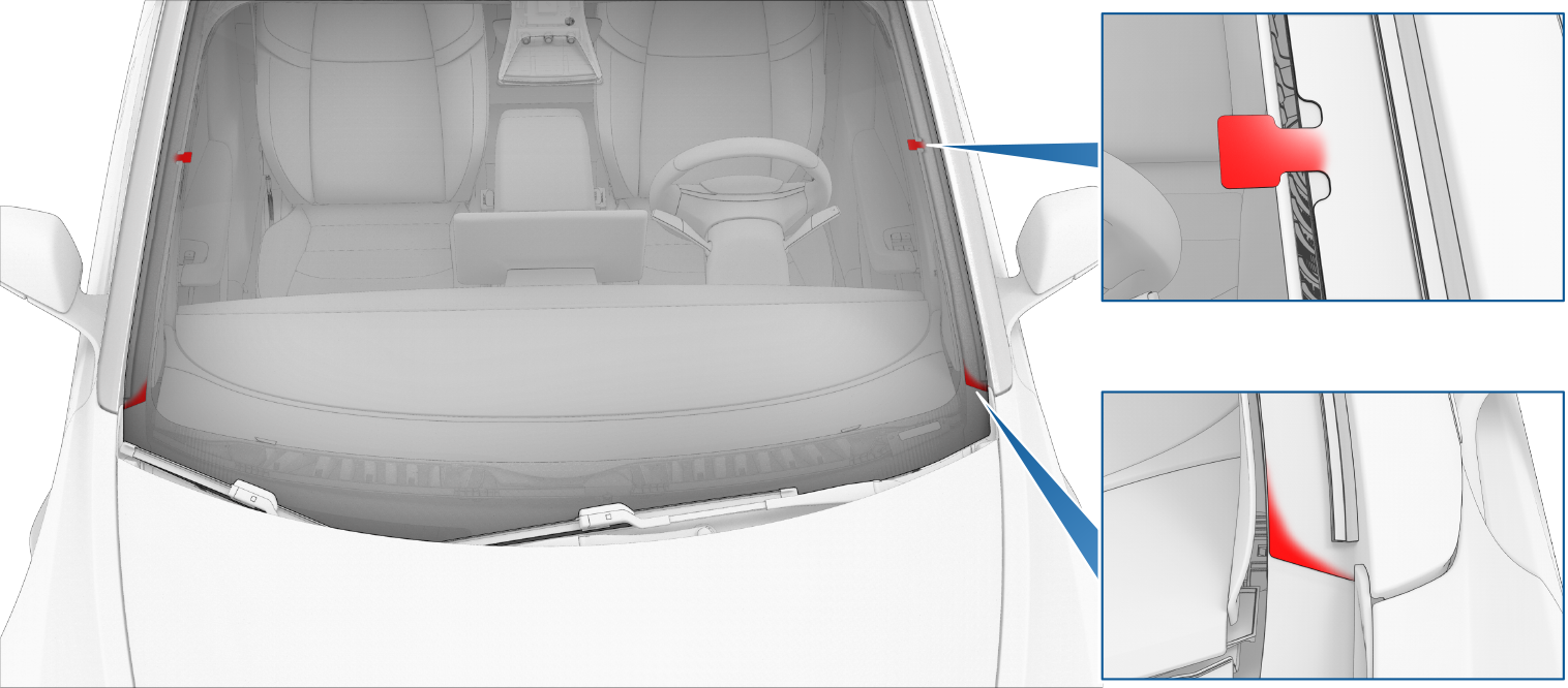 - 将挡风玻璃总成完全放置入位,检查间隙与齐平度,按需进行调整。