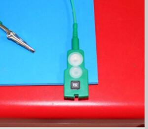 - 将静电放电 (ESD) 垫平放在工作台上,使按钮连接器距离接地点(插座和车辆底盘等)尽可能近