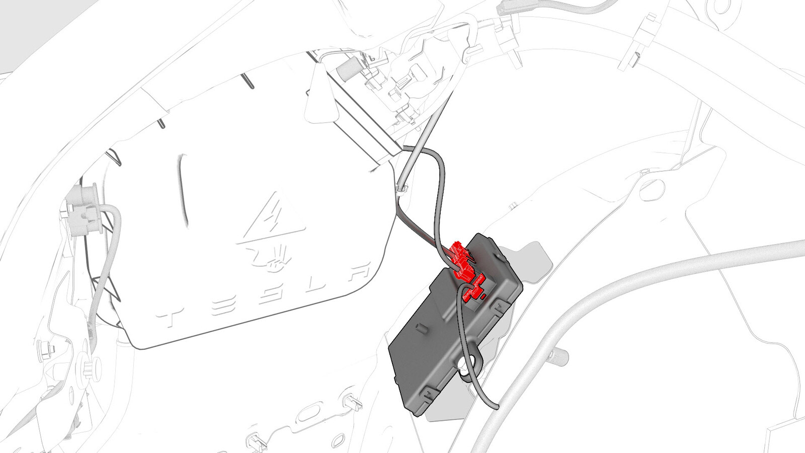 5.5 Nm (4.1 lbs-ft) - 将充电接口电子控制单元 (ECU) 滑至右侧,以松开将电子控制单元 (ECU) 固定到车身的锁片(2 个),然后将电子控制单元 (ECU) 从车辆上拆下。